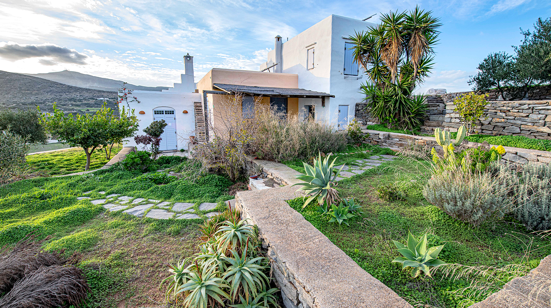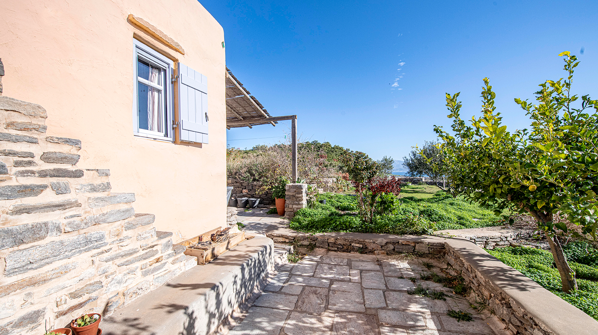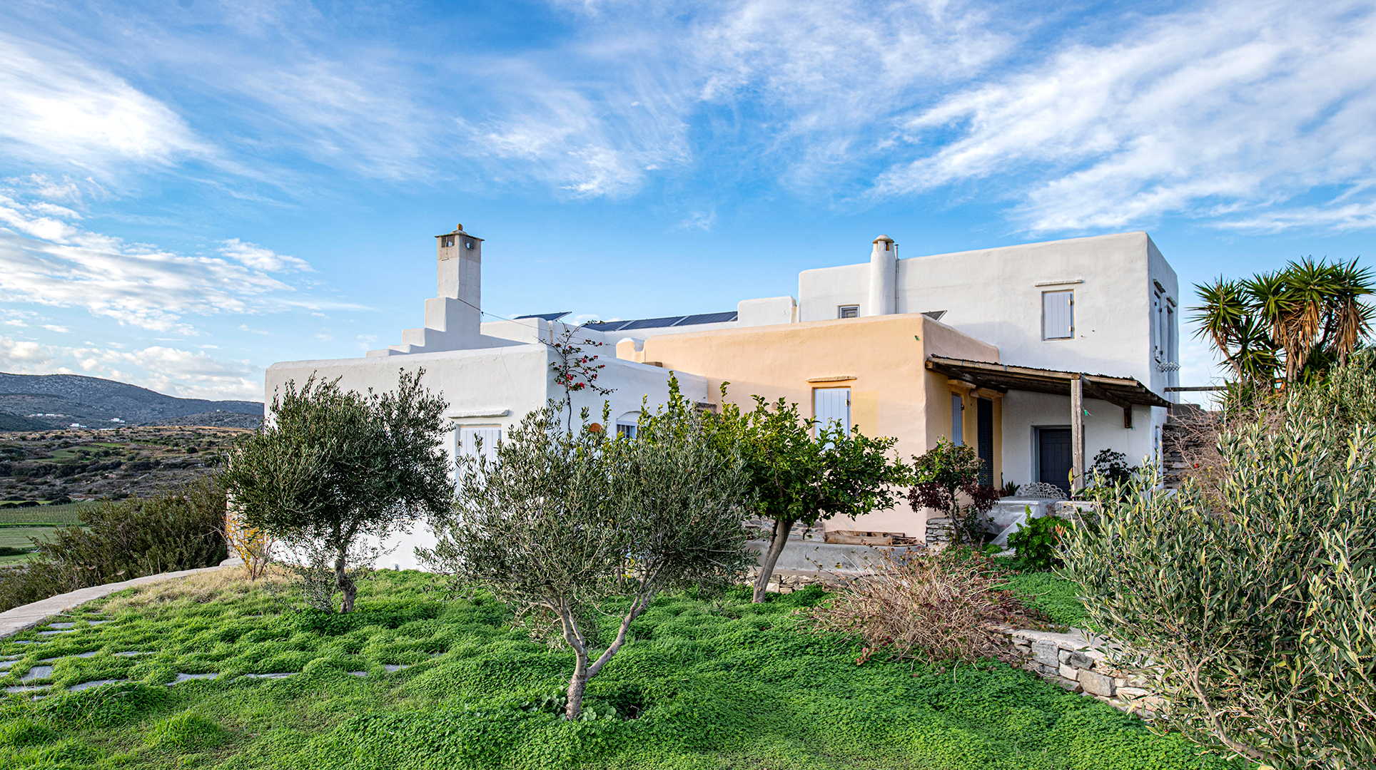 The house, traditionally build in the years 2005-2008, on the top of the hill of Profitis Ilias, offering marvelous views to the sea and Naxos island.