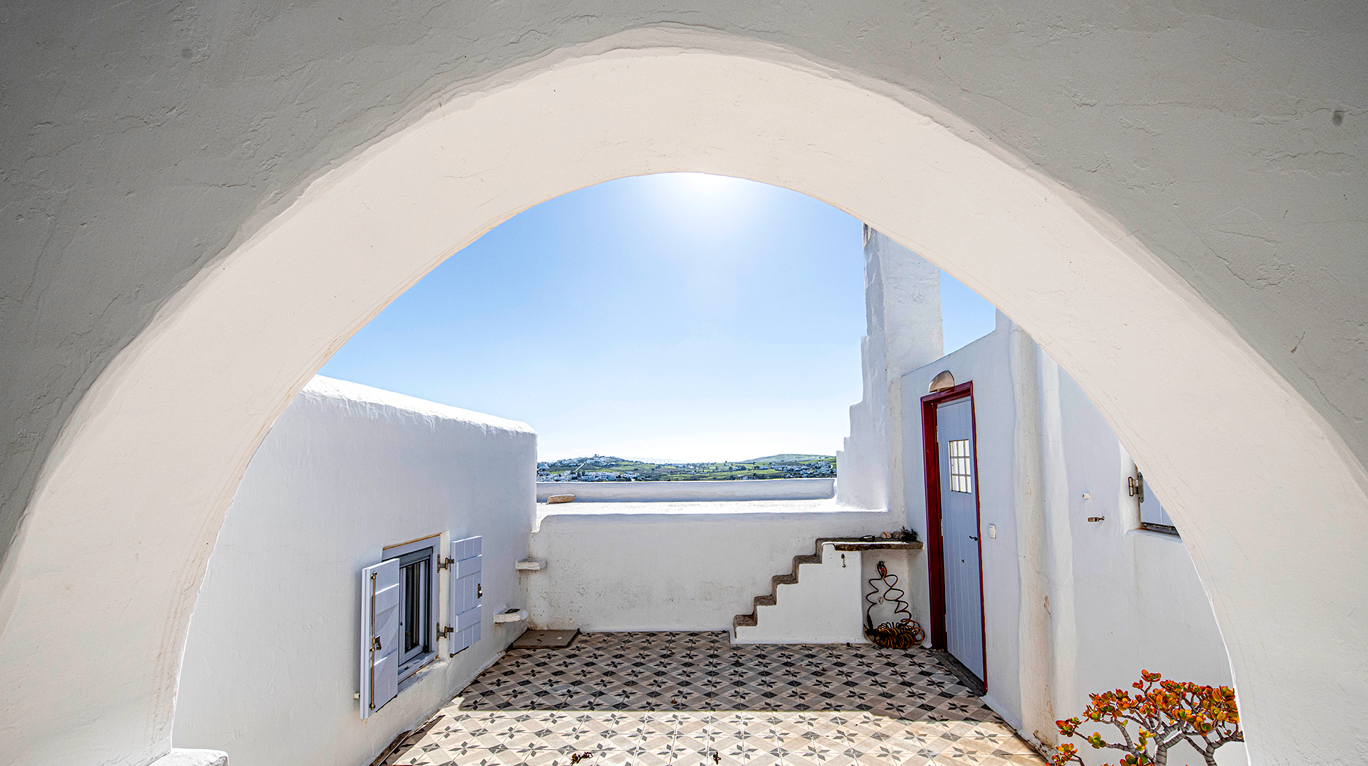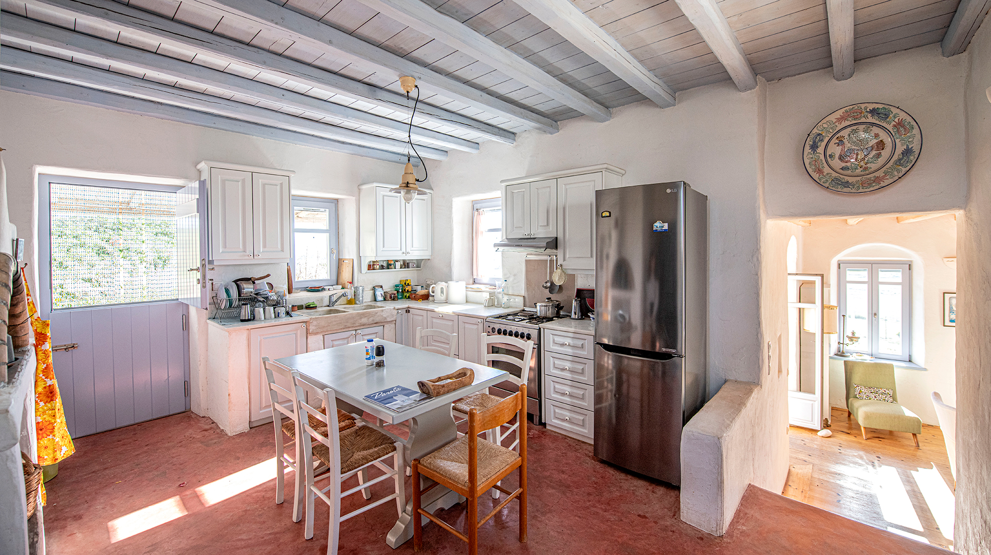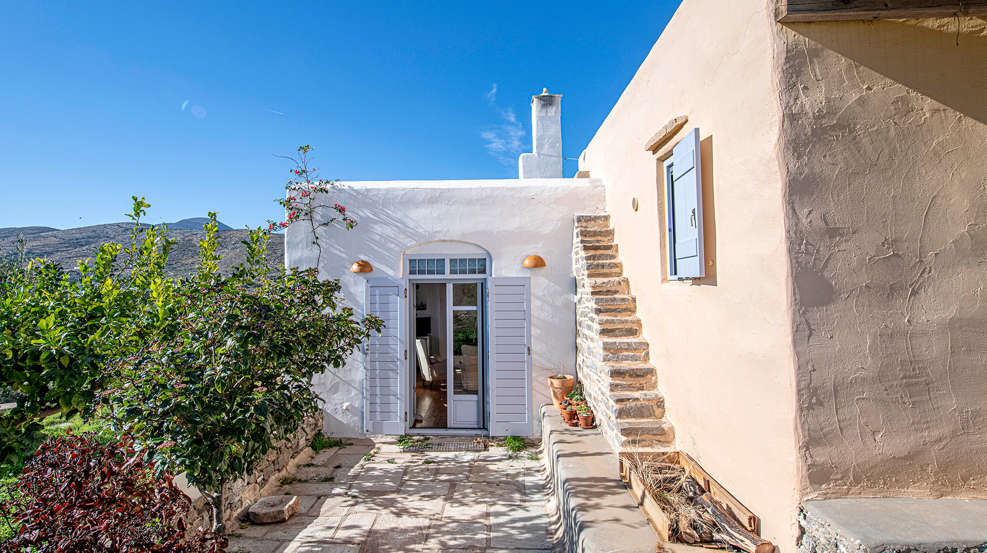 The house, traditionally build in the years 2005-2008, on the top of the hill of Profitis Ilias, offering marvelous views to the sea and Naxos island.